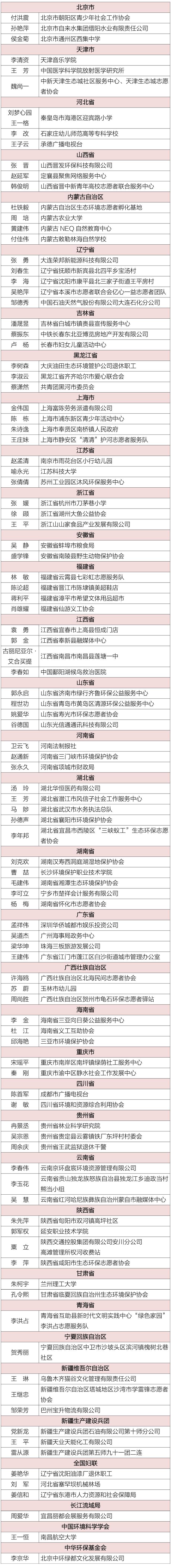 2022年百名最美生态环境志愿者名单